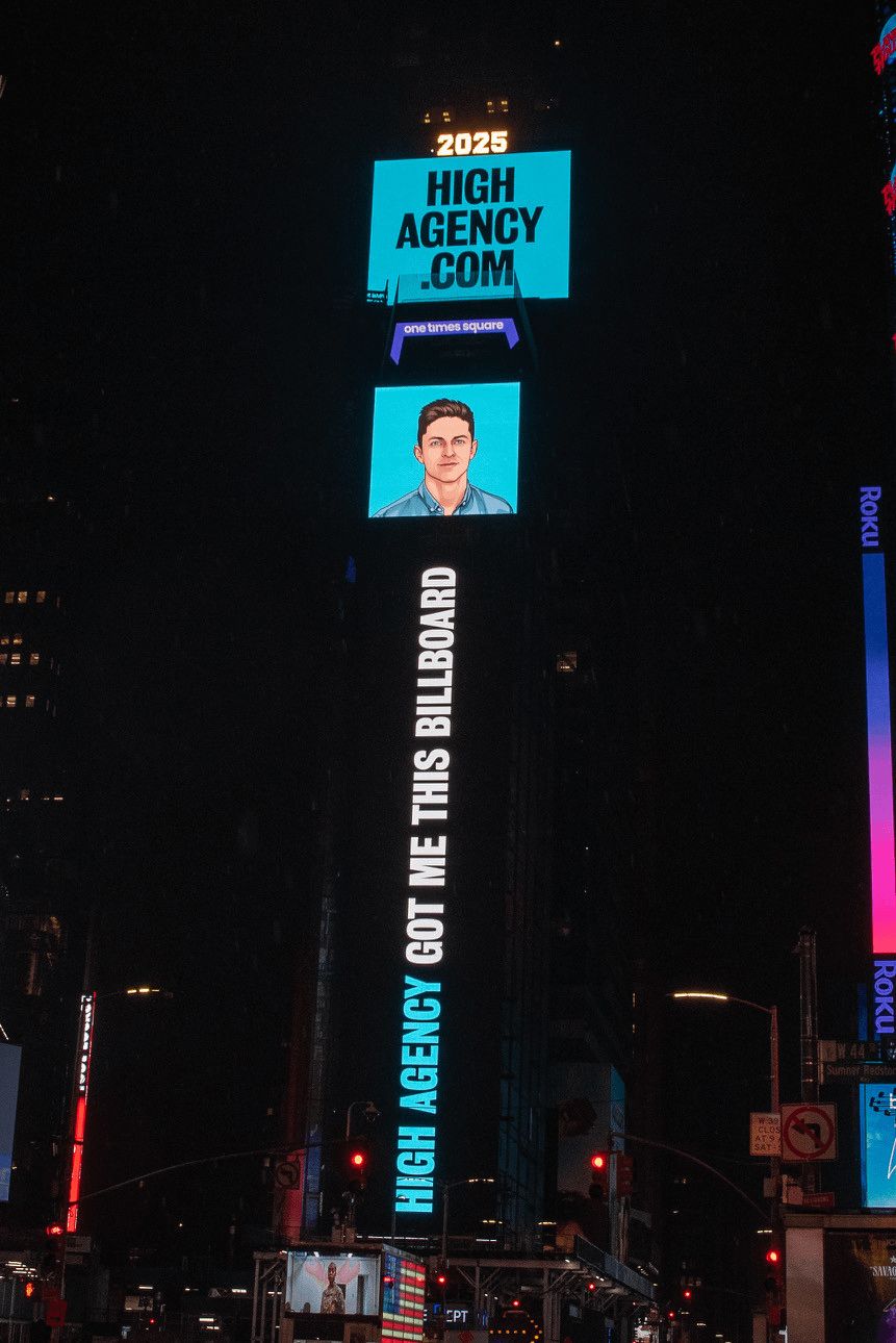 这集对谈的嘉宾是 George Mack,就是上面那个在纽约时代广场给自己的文章做大屏广告的人。他因为对「能动性」(Agency) 这个概念的理解和宣传,在 X 上广为传播。他这篇长博文就是把对「高能动性」(High Agency) 这个主题长久以来的思考全盘写了出来,这篇文章写了 7 个月,但酝酿了 5 年。